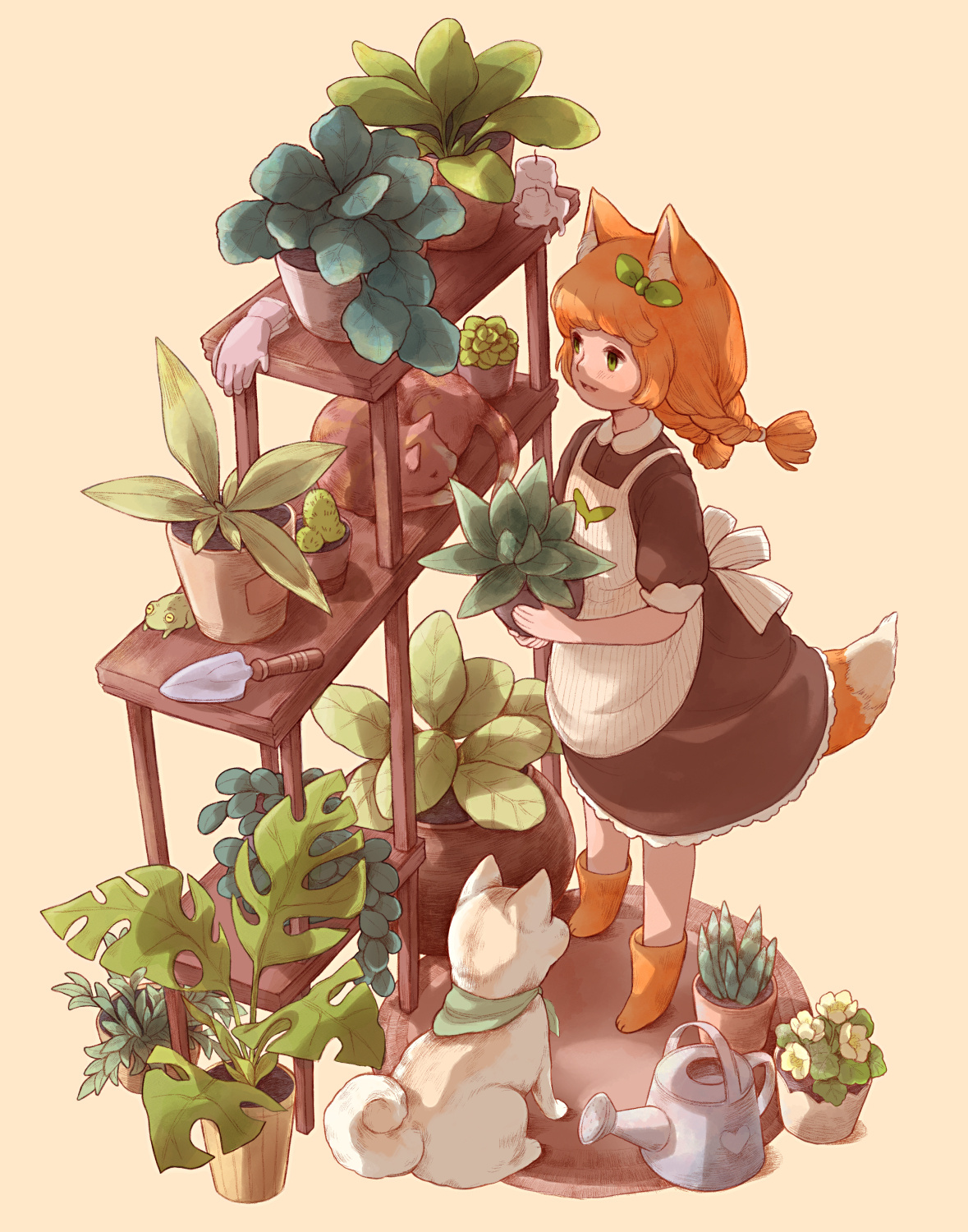 Please provide reference image of a character, list of 3 items that will be used in illustration and your color preferece for background